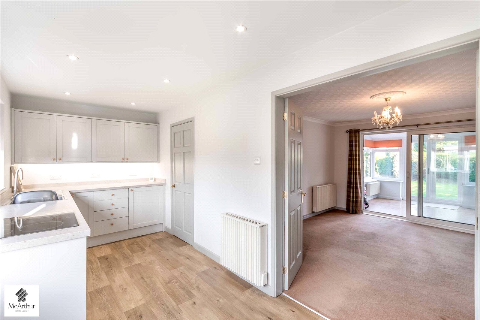 Entering this home to your right is the kitchen. This space is a modern open kitchen/diner with neutral grey units and warm toned wooden flooring. The kitchen has integrated hob, oven, microwave and fridge/freezer. There is plenty of cabinetry space for storage. Leading through the kitchen is double doors to the lounge which has a fireplace as a centrepiece, neutrally decorated with double doors leading to the garden room. There is also a shower room on the ground floor which has floor to ceiling tiles with a double shower and a convenient W/C.