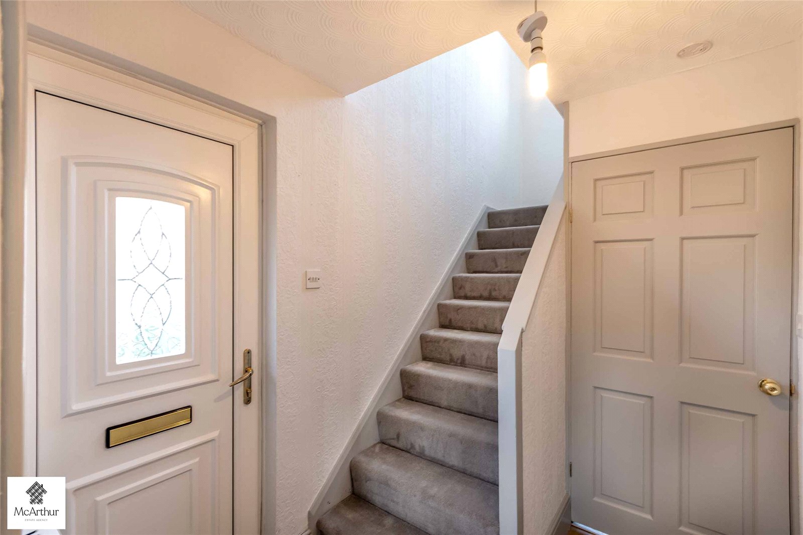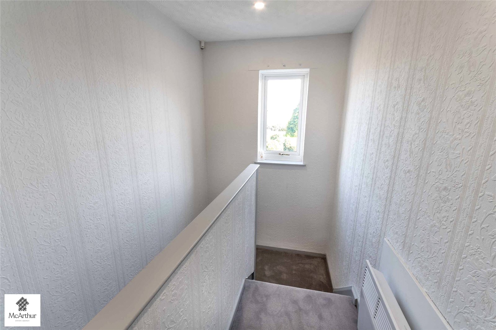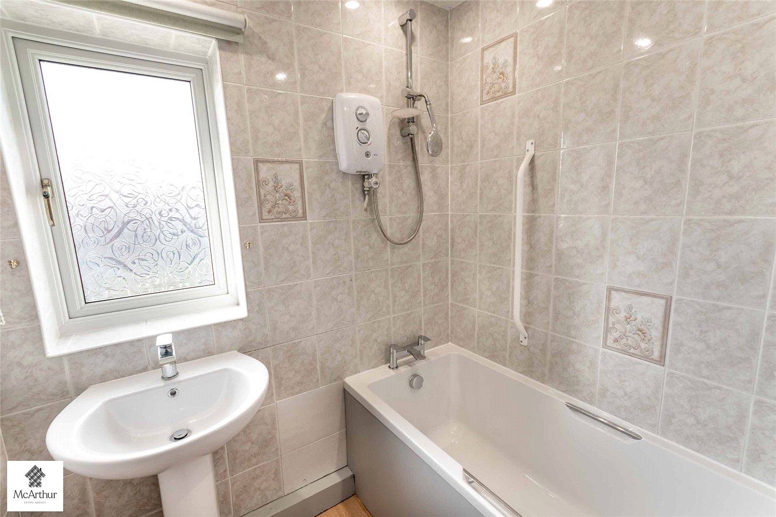 Going up the stairs there are two double bedrooms. In the master bedroom there are large windows and plentiful cupboard space. Both bedrooms are neutrally decorated. In the main bathroom there is a bath with an overhead shower and floor to ceiling tiles.