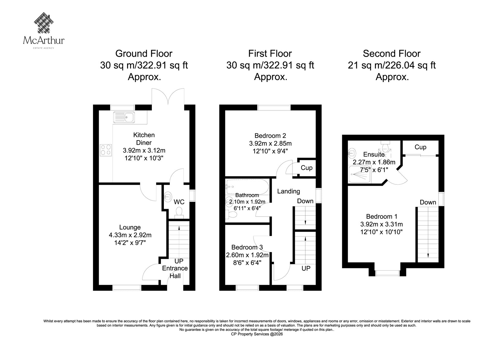 3. The measurements indicated are supplied for guidance only and as such must be considered incorrect.