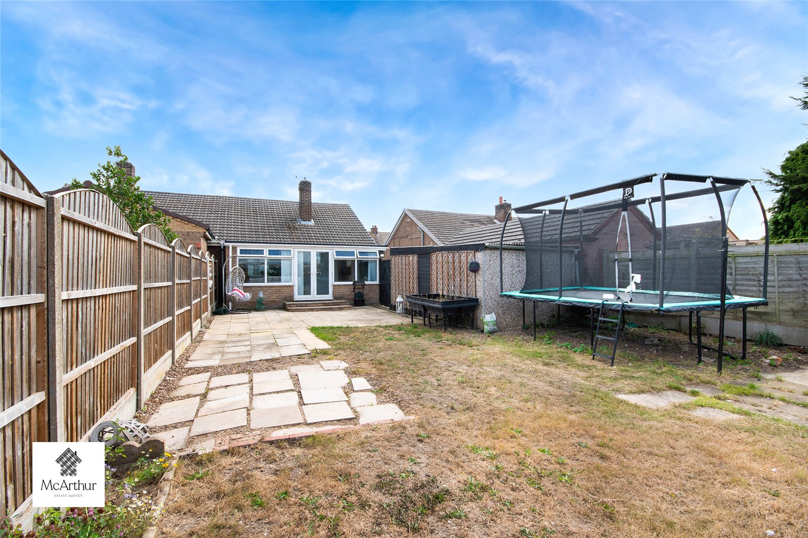 The bungalow sits on a generous plot with ample space to both the front and the rear. Both the front and the rear gardens are mainly paved, making for low maintenance spaces.