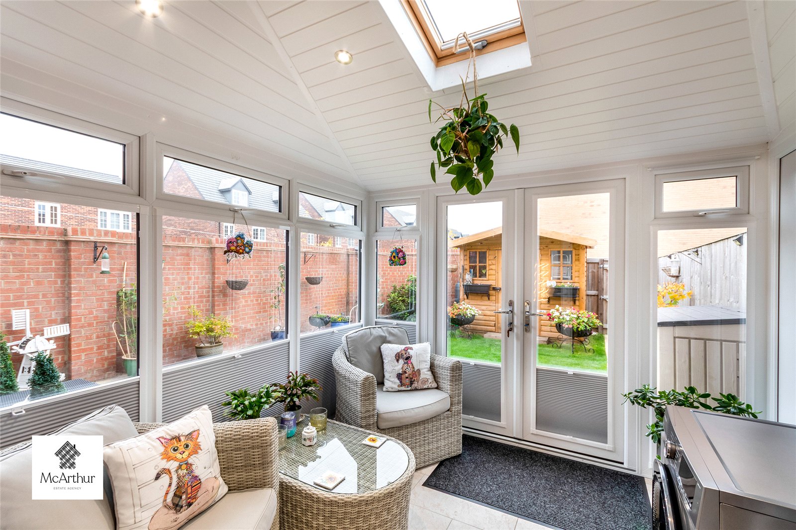 To the right side of the house you will find off street parking and a small garden area. To the left side of the house is the rear garden with high walls and fencing all around the perimeter enabling you to have more privacy within your home. The rear garden includes a patio area and lawn, and the garden shed.