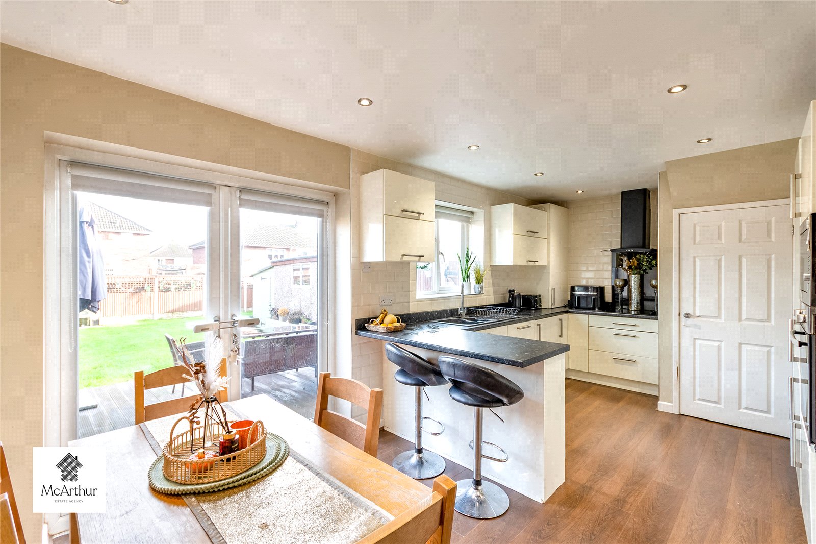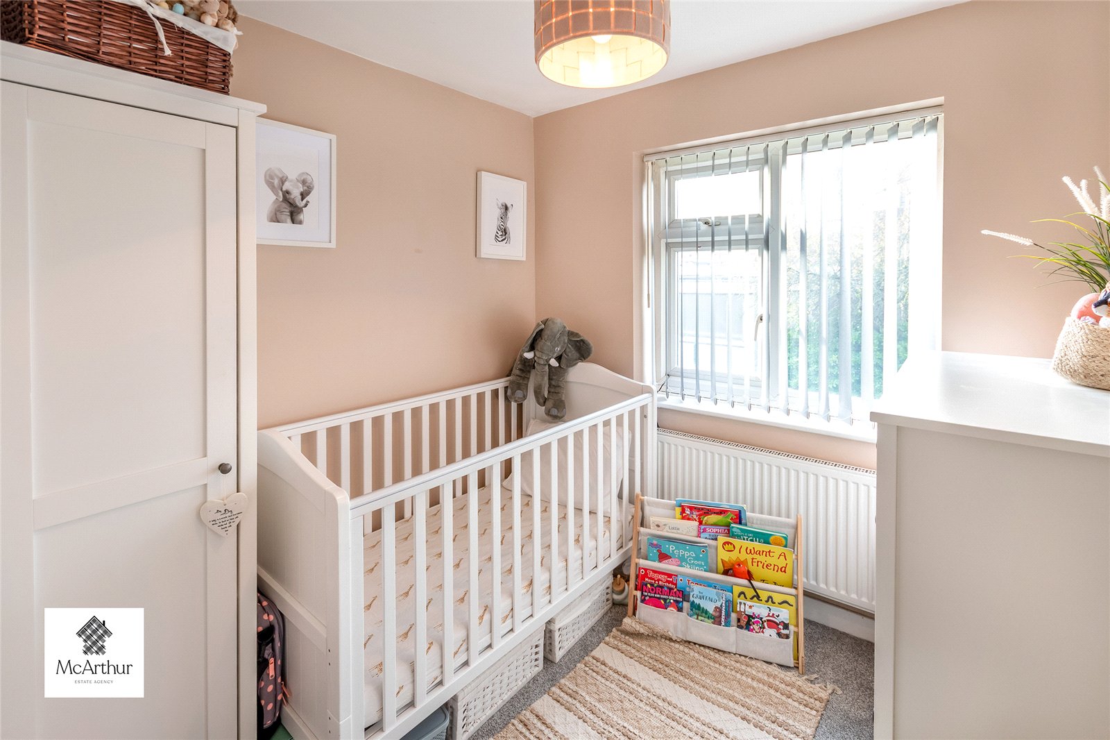 To the front of the house there is a walkway to the home with a well-kept lawn space. The garage is accessible from the front garden heading down the driveway. Arriving onto the spacious rear garden there is a decking/seating area alongside the patio doors. There is fencing all around the garden allowing more privacy.