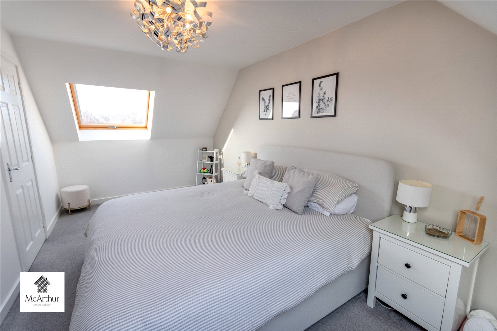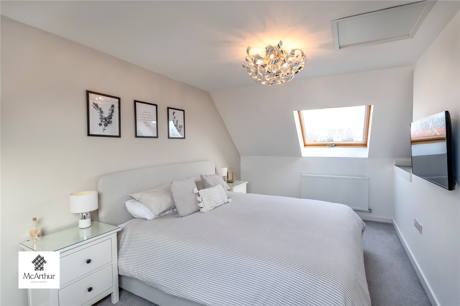 To the second floor landing you are met with a storage cupboard, and access into the first bedroom. This bedroom draws in lots of natural light through two skylights, and presents a perfect space for a dressing table, or a workspace.