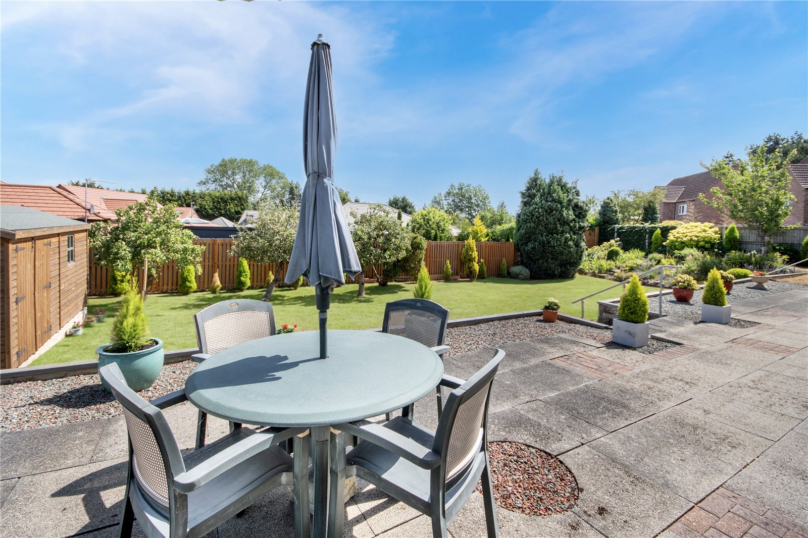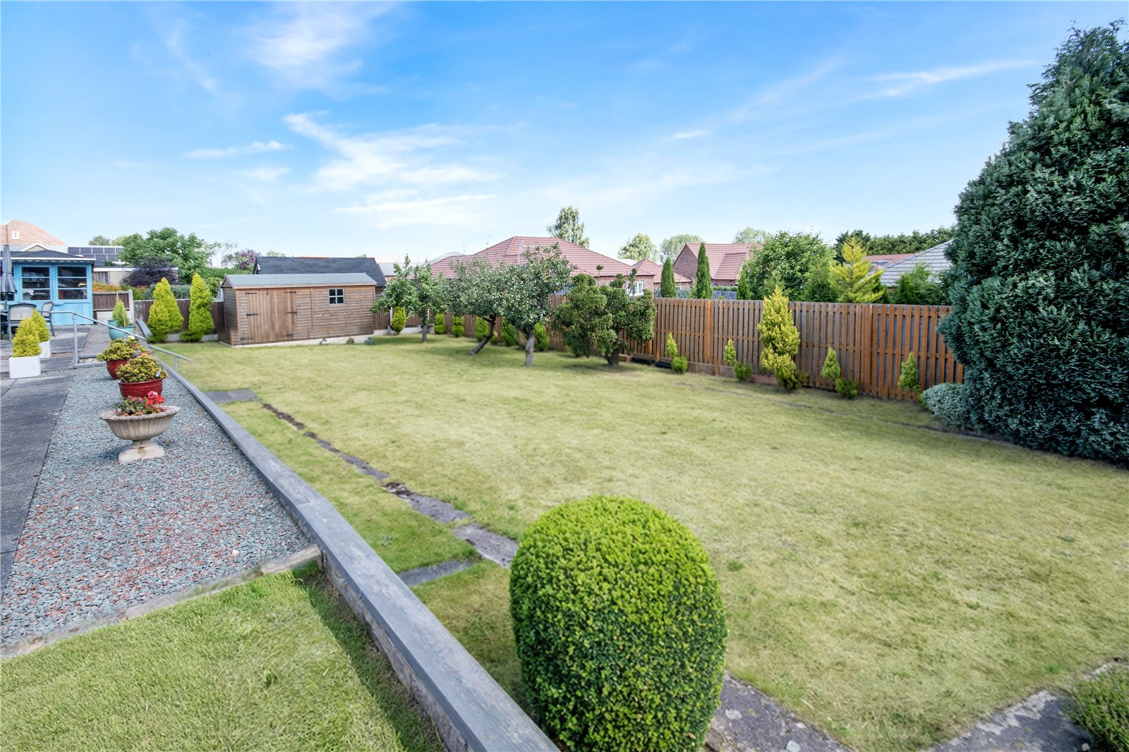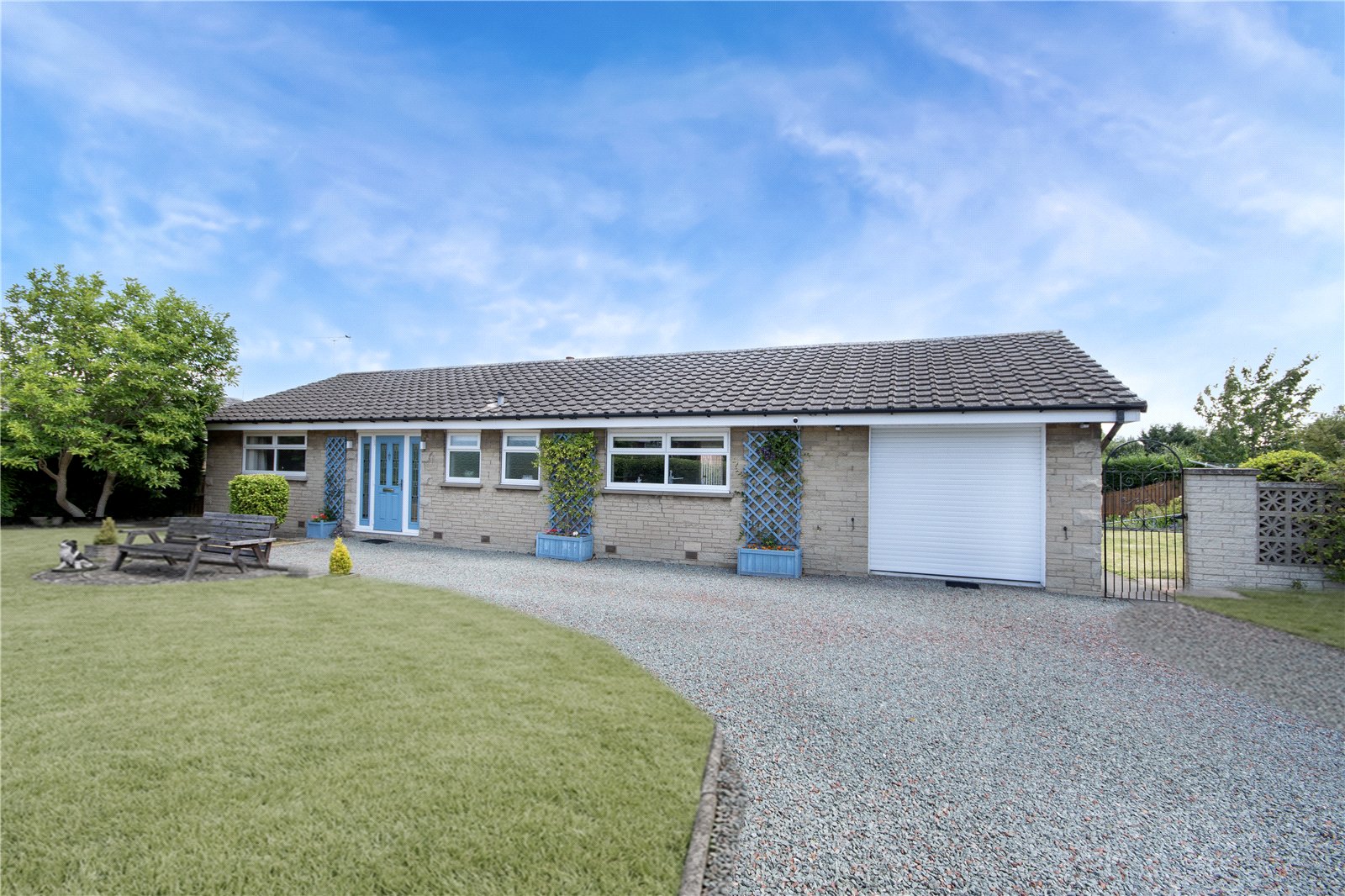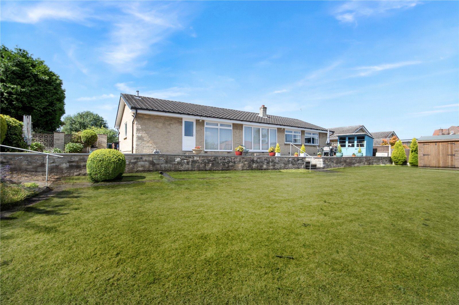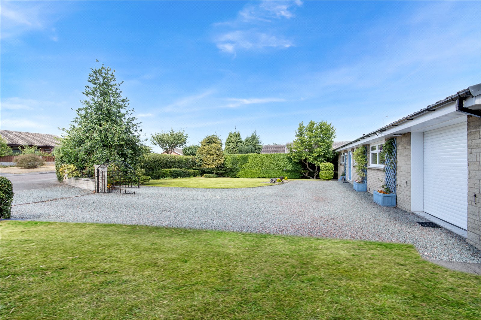 On approach to the bungalow is a sizeable gated driveway with significant room for multiple vehicles and a nicely maintained front garden. There is also gated access to the rear garden which is an expansive space set across two levels. From the lounge/diner you are led out onto the large patio area offering a perfect space for outside entertaining. This then leads down to a vast lawn which features a well presented landscaped space with evergreen shrubbary and planting. Attached to the bungalow is the large garage and store which can be accesed at both the front and rear of the bungalow and includes internal access as well.