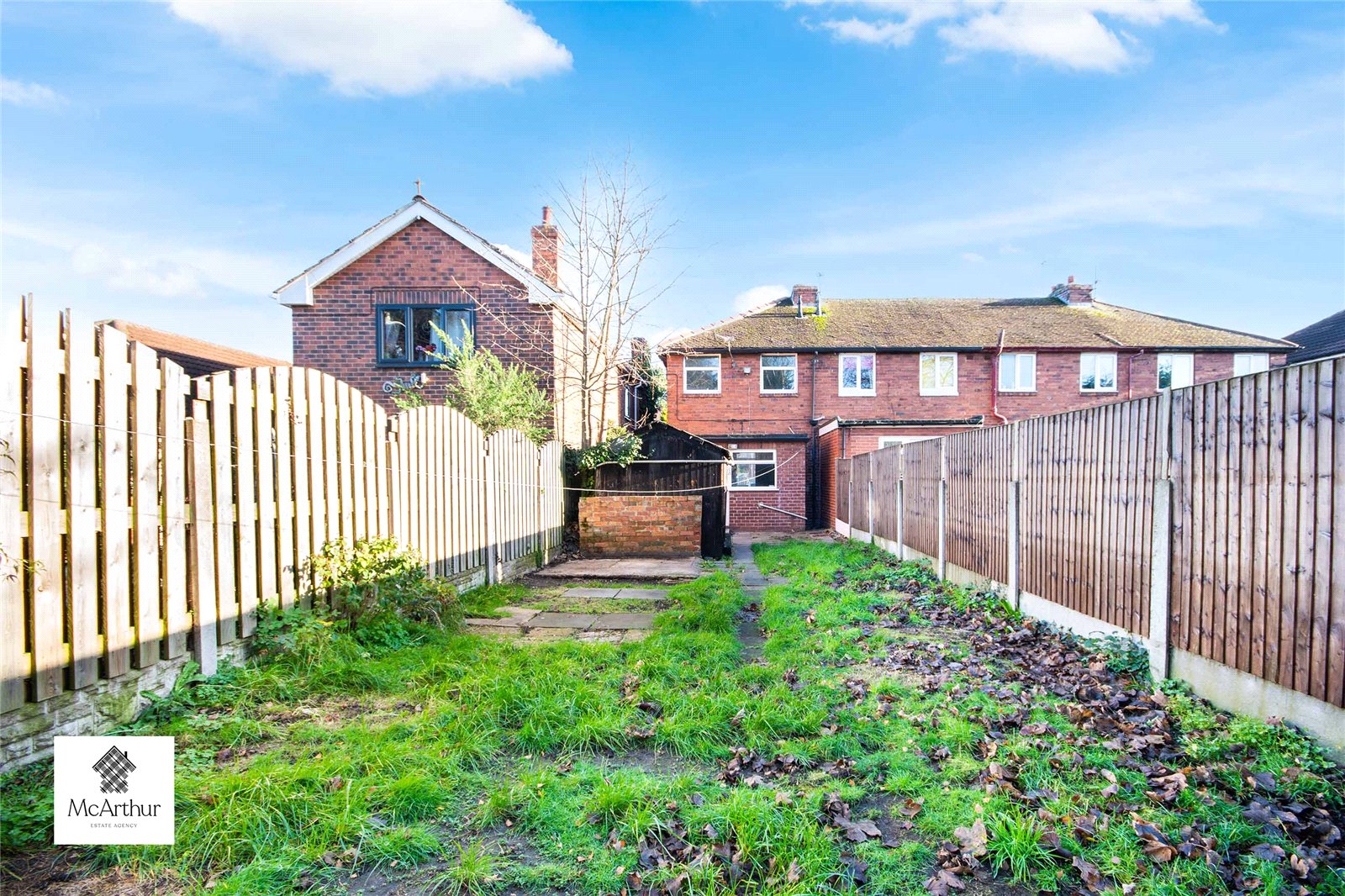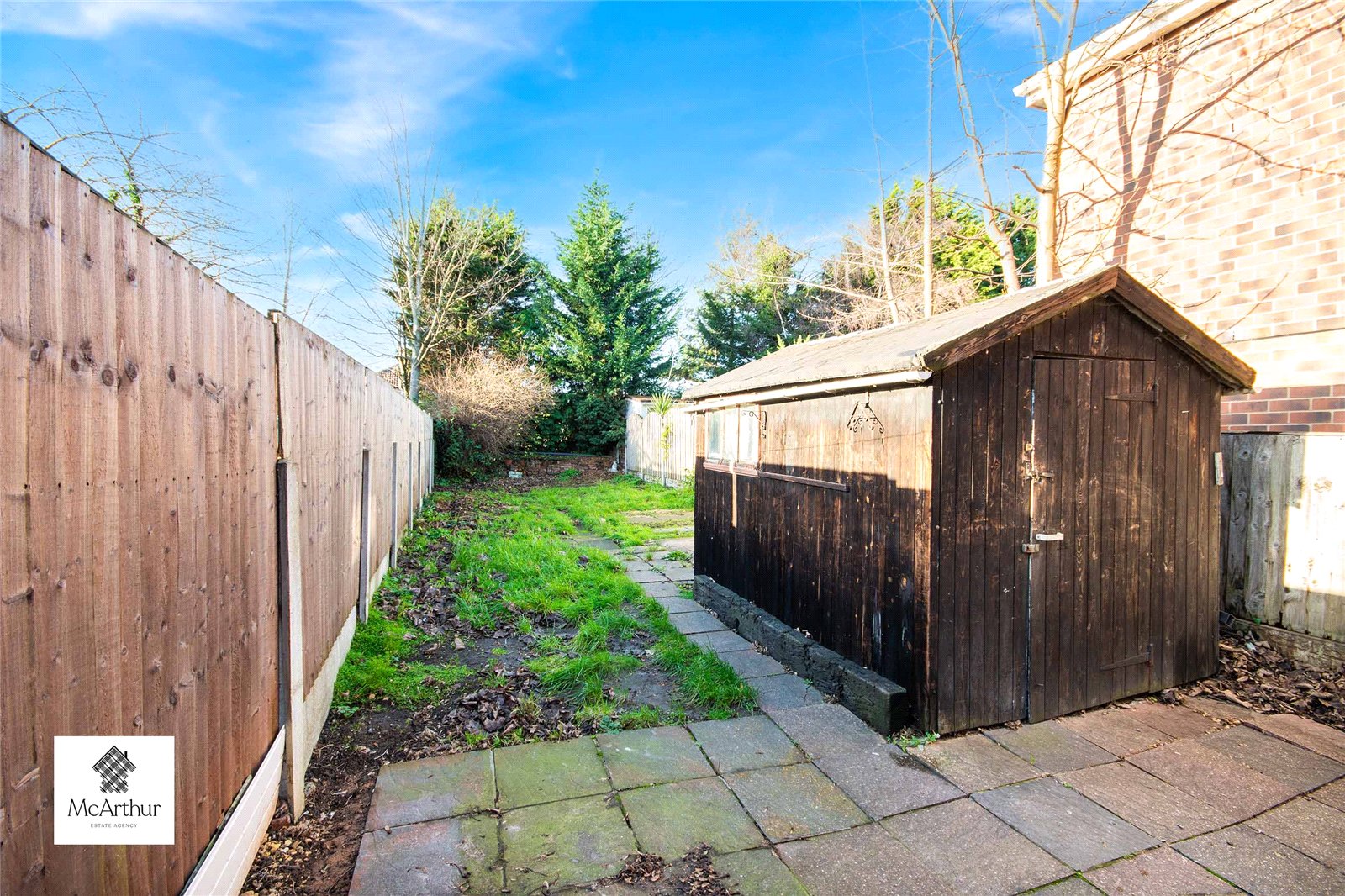 At the front of the home there is a walkway up to the gate to get into the property. The rear garden has a shed with fencing all around allowing privacy within the home.