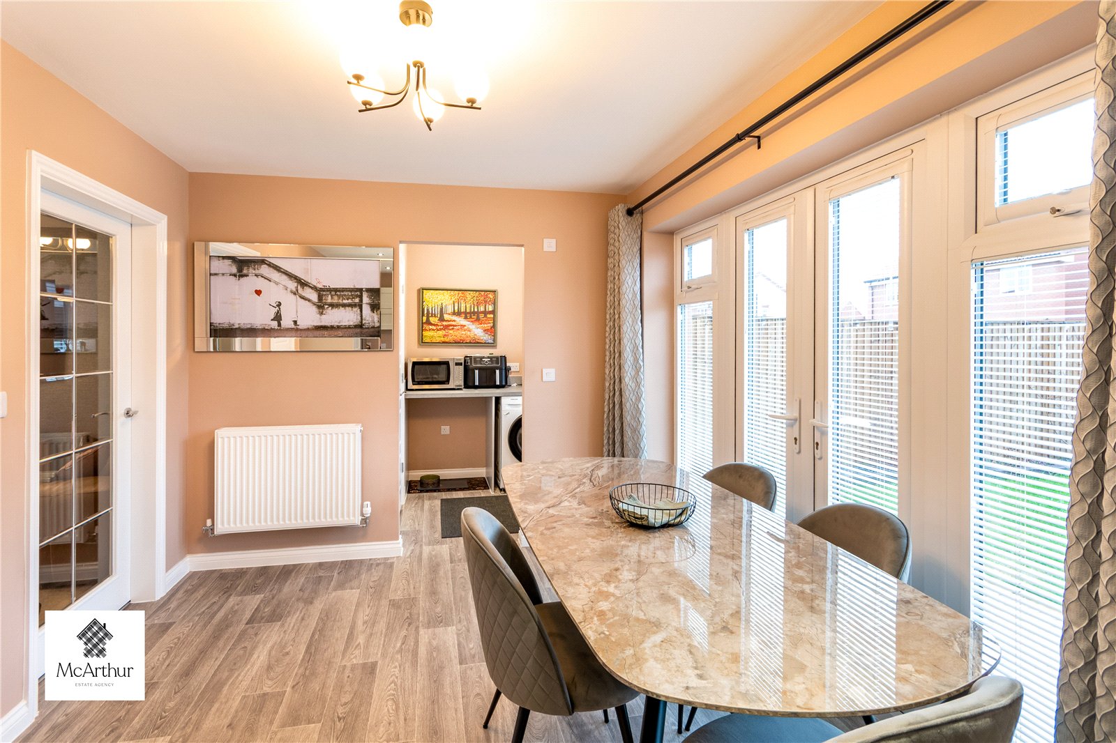When you are welcomed into this detached home you are met with the generous sized lounge with a large window allowing it to brighten up the space, this is a common theme throughout this home. The lounge is a neutrally decorated space. Through the lounge is the kitchen/diner, this area is modernly decorated with an integrated fridge, freezer and oven. Warm toned Spotlights elevates the modernisation and double doors leading to the private rear garden. There is also a convenient W/C and utility room which is perfect for storage space.