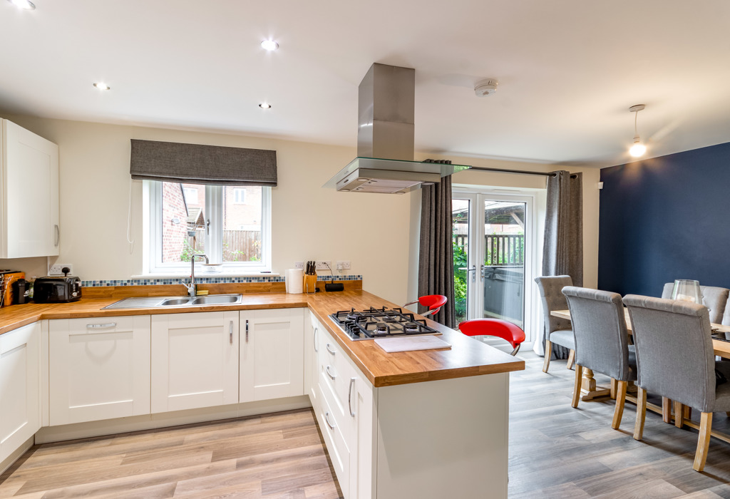 Through the large front door into the entrance hall, you are met with the stairs to the first floor, a large storage cupboard and access into the spacious living room. Further down the hall towards to rear of the property, you are met with the utility room hosting, counter top space, washing machine and tumble dryer and access out to the side of the property where the garage resides. Past the utility room you enter the open plan kitchen/diner presenting to a high standard offering double door access onto the private rear garden. Kitchen includes, fridge freezer, gas hob including wok ring, oven, grill and dishwasher.