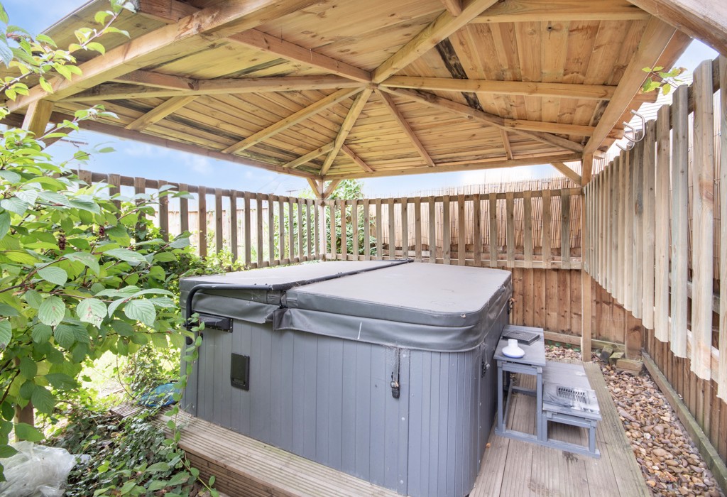 To the front of the property you are met with well presented flower beds surrounding the front door. Down the side of the home sits the long driveway for enough off street parking for 3 cars with an electric point leading you to the detached garage and side entrance into the kitchen. Around to the back of the house you are met with the large private rear garden hosting a lawn with beautiful rose bushes and trees, apple, cherry, plum and a small chestnut tree. A secluded covered patio for privacy which collects rainwater in to the butts and an outdoor kitchen area where there are electric points, including a garden fridge. A private and covered 6 person Hot tub area allows you to relax, it includes hydro jets, waterfall, LED Lights and bluetooth speaker system. Peace of mind in security is provided by the fitted alarm alongside 3 HD CCTV cameras which can be viewed anywhere in the world via an app.