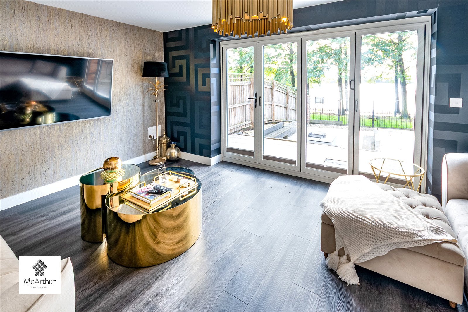 As you enter through the door you are welcomed into the hallway, hosting the stairs to the first floor, and the W/C. To the right, you are invited into the open plan kitchen/diner, hosting a bay window. The kitchen is decorated to a modern standard with many features such as, grey gloss combinatory across the kitchen with integrated fridge/freezer and a double oven. At the end of the hallway you enter the lounge, decorated to a high standard. This space is open and pulls through lots of natural light due to the large doors leading you to the rear garden. The lounge boasts stunning views across the lake.