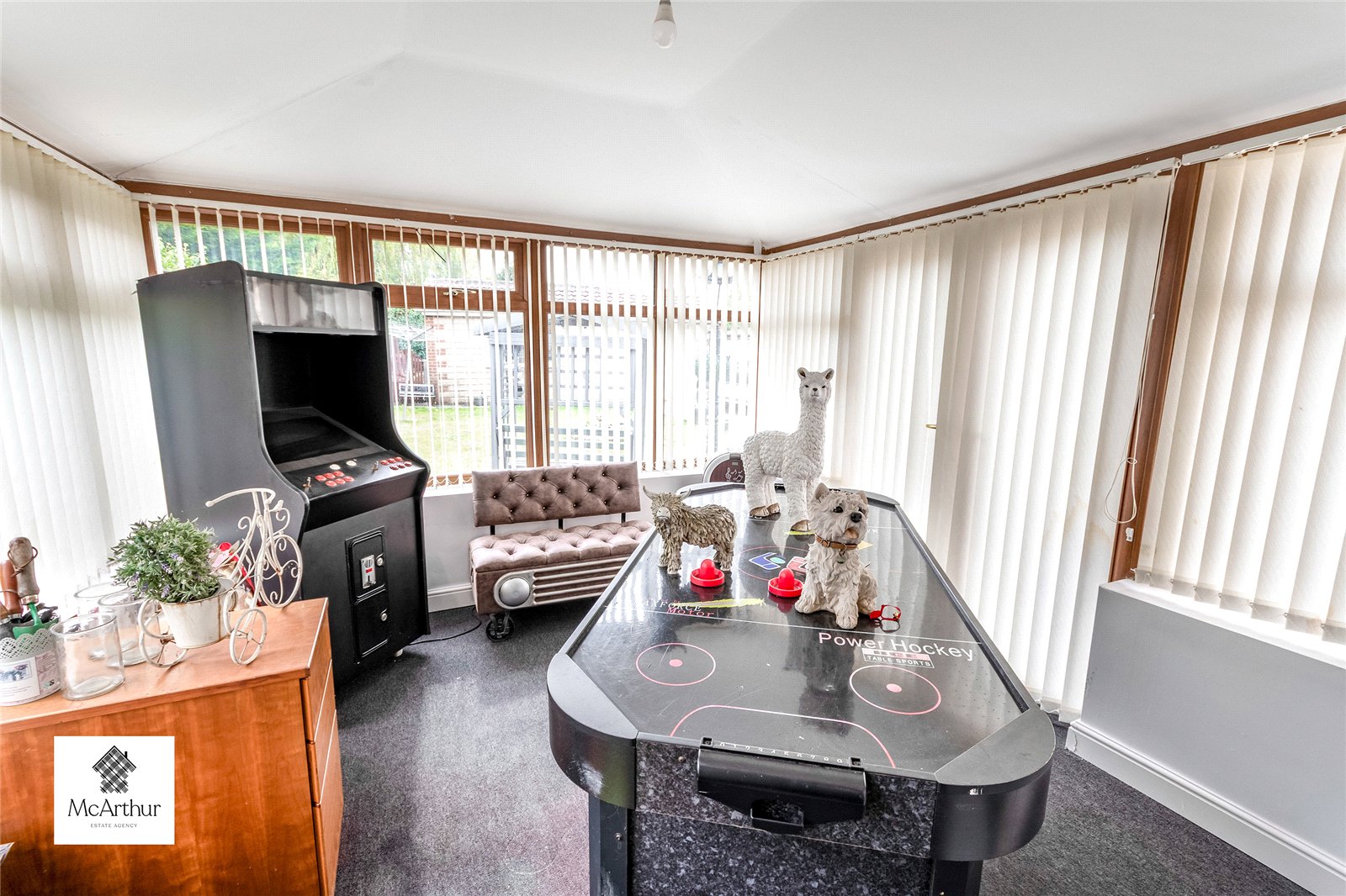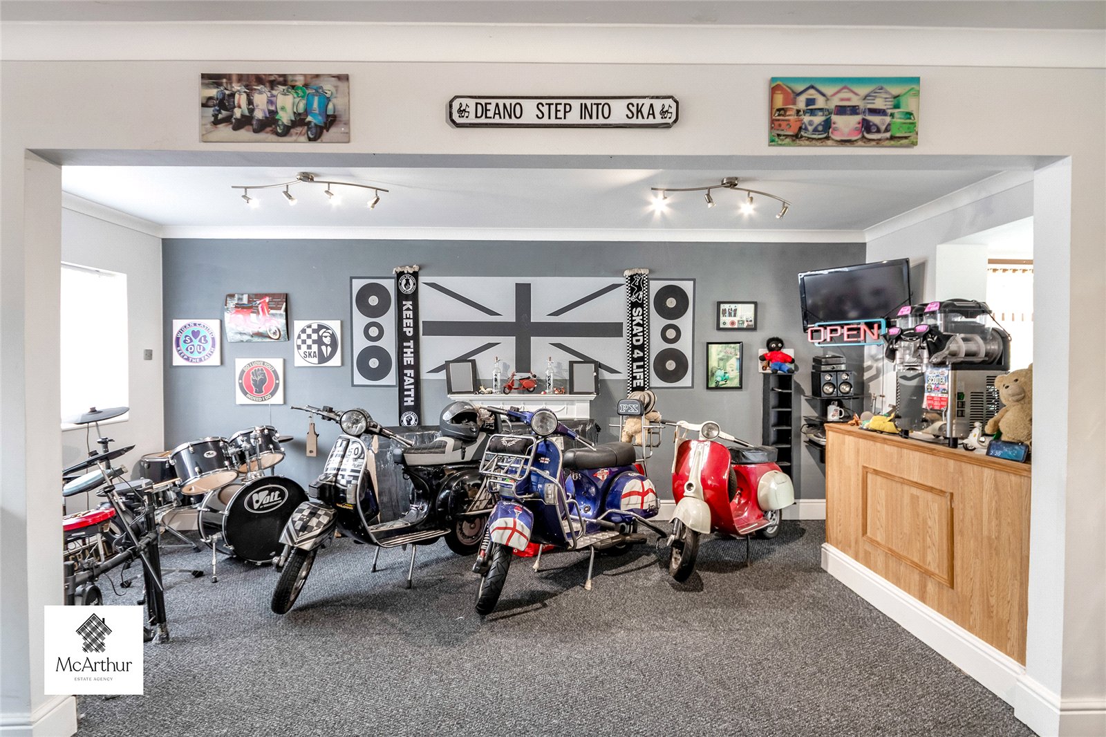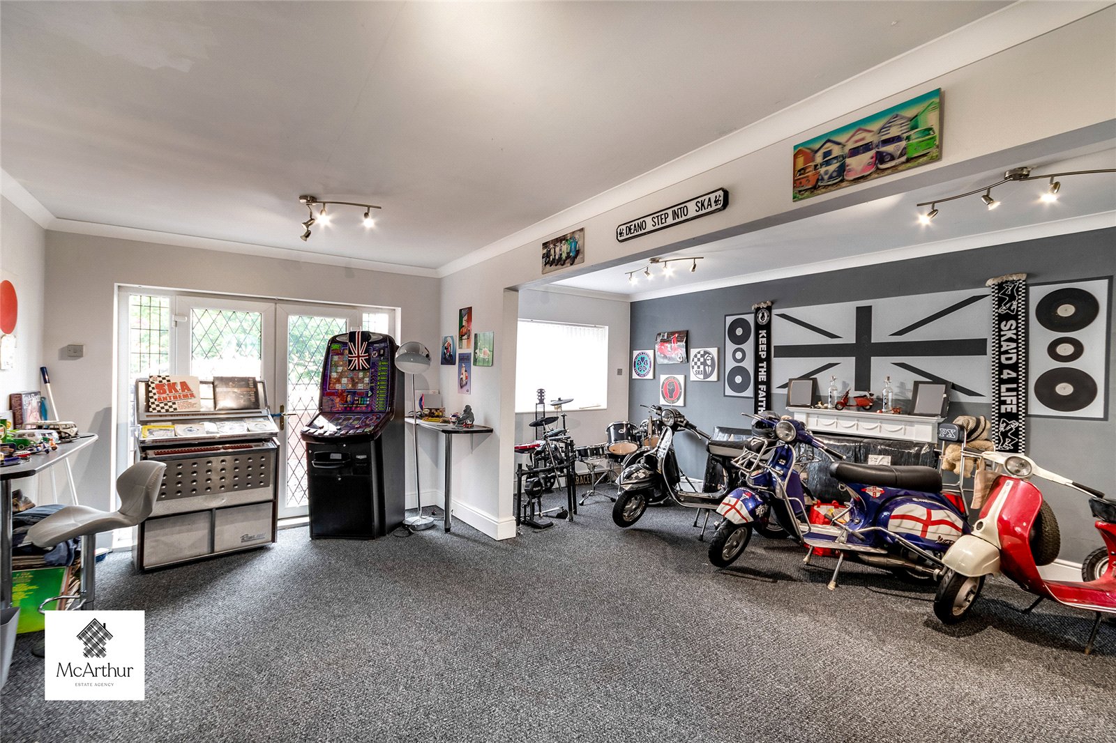 Through the kitchen you also have a fantastic entertaining area currently utilised as a games room as well as a further garden room which provides a lovely view of the outside space.