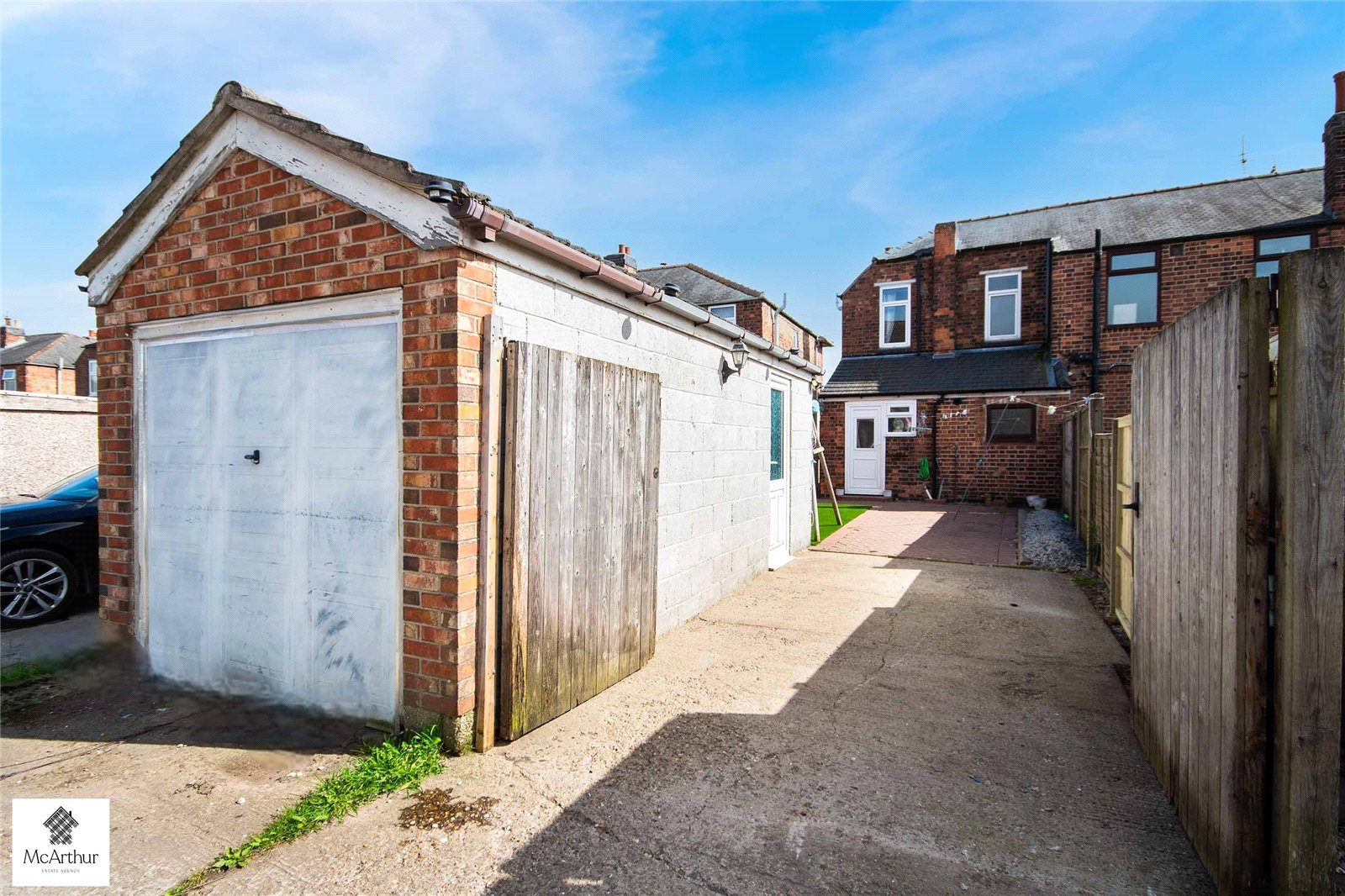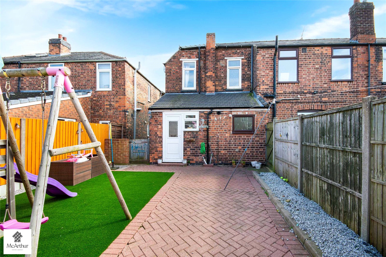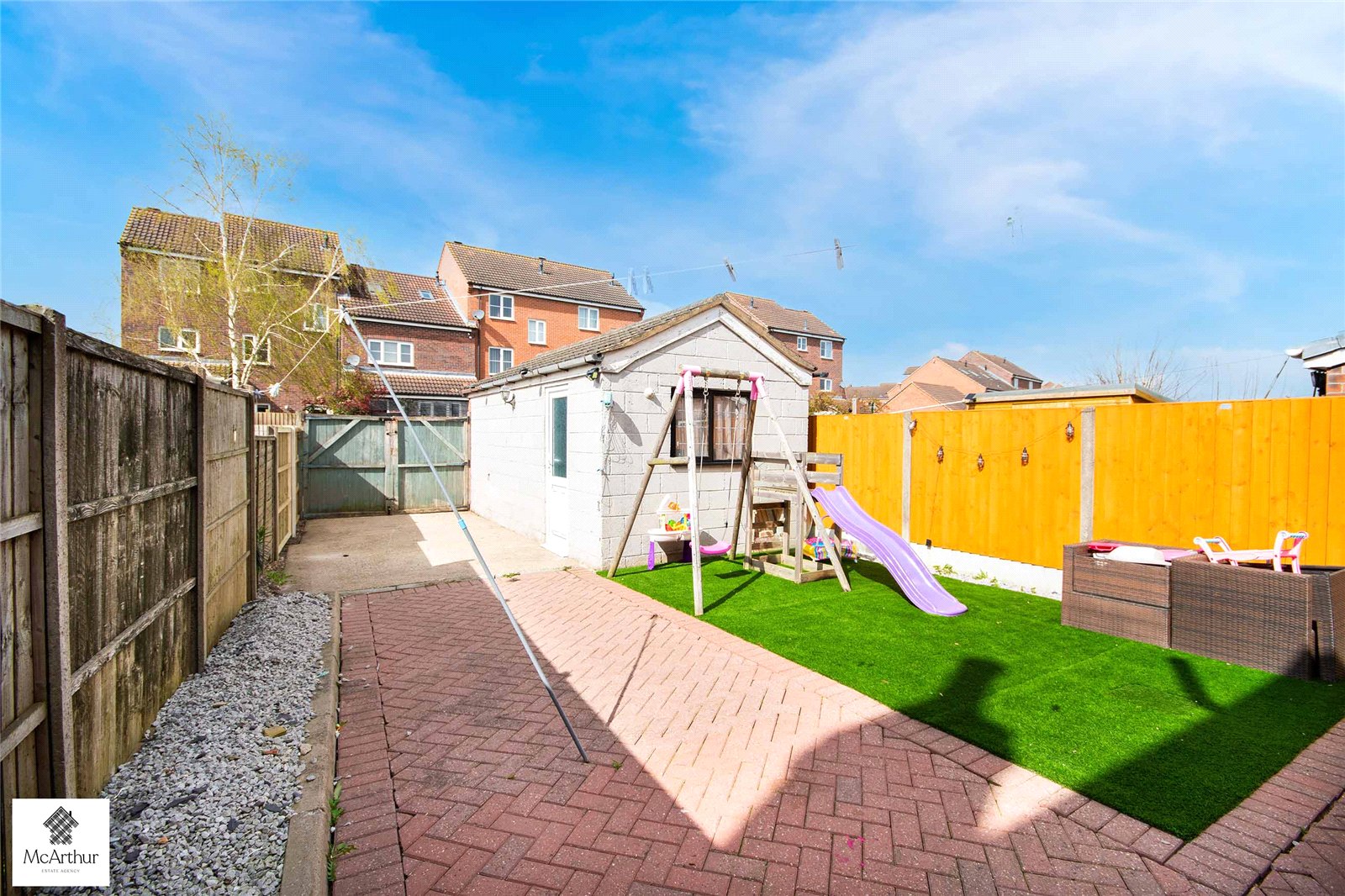 Approaching this home offers a neat and functional outdoor space. To the front of the property, there is a lawn accompanied by a walkway leading directly to the front door. To the rear, the garden is well laid out with a lawn, and a patioed seating area.The space is fully enclosed with fencing, providing privacy and security, and also benefits from a garage for additional storage.