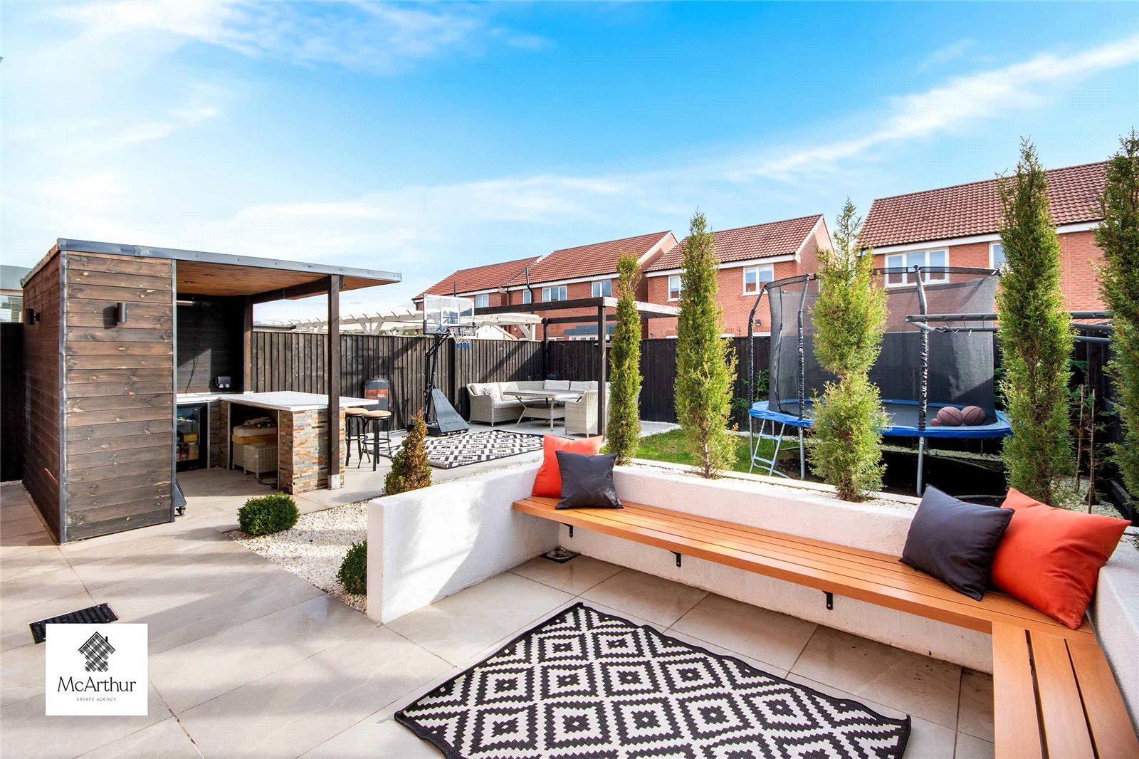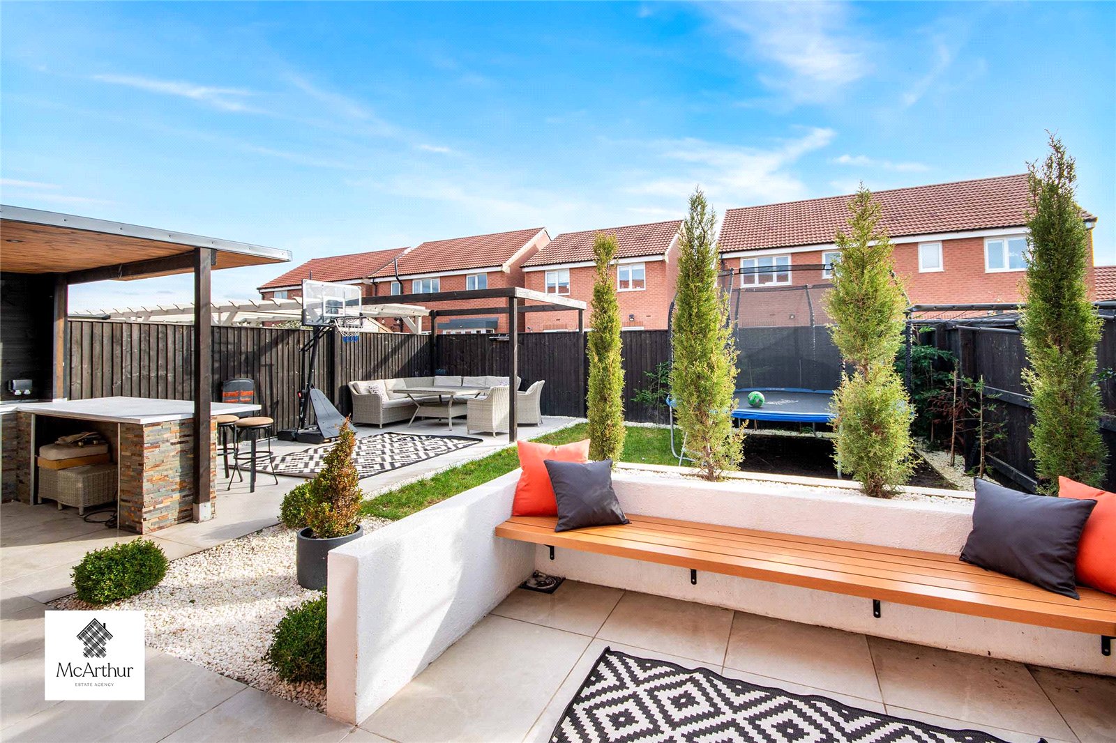 Walking up to this home you are met with a generous sized driveway and garage. Going into the private rear garden which is well maintained with patio seating areas, an outside bar area perfect for summer nights with spotlight lighting. There is also a lawn with plant beds along the fencing surrounding the property.